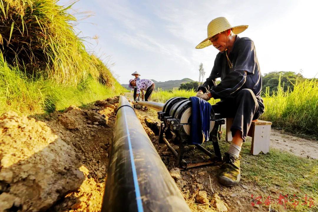 江南都市報訊 全媒體記者許南平、實習生沈海斌攝影報道:8月19日下午,記者來到一周前采訪的湖口縣流芳鄉(xiāng)青年村抗旱現(xiàn)場,只見原本干渴的池塘,已經(jīng)灌上了水,停止的抽水機重新工作。種糧大戶徐小斌正在給收割了的再生稻放水,爭取二茬再生稻有個好收成。接近干枯的馬鞍山水庫下游,兩臺機械揮舞著鐵臂,沿著機耕道開挖管道,十余位村民正在安裝水管。旁邊壟田的再生稻稻穗金黃,即將收割。一片青蔥的是一季稻,開始抽穗揚花。遠處的茶山在噴灌抗旱。“我們村自8月12日開始抽水抗旱,一周電費便用了1808元。當天訂制的7萬元水管,今天總算到了。我們正在爭分奪秒安裝管道,從造湖水系將水源提灌至馬鞍山水庫,全長2600米,計劃三天左右時間可全線貫通。”湖口縣流芳鄉(xiāng)青年村黨支部書記、主任石論和介紹說,“管道抽水抗旱,既精準又節(jié)約用水,不會造成水源浪費。只要馬鞍山水庫不干水,全村2000余畝水稻、棉花、大豆、白茶等作物就會得到有效灌溉。如果將管道鋪設至每片壟田和地塊,投資太大,也買不到水管,時間更不允許。”當前,湖口縣流芳鄉(xiāng)科學調(diào)度、精準施策、高效抗旱,加強引導,發(fā)動種糧大戶、村民主動參與,積極開展生產(chǎn)自救,盡力將災害損失降至最低。
