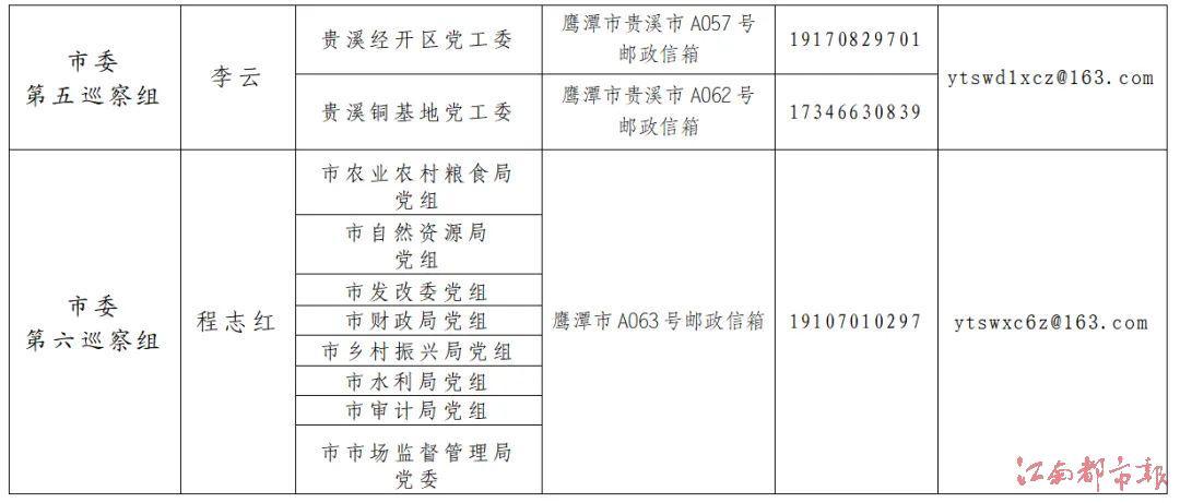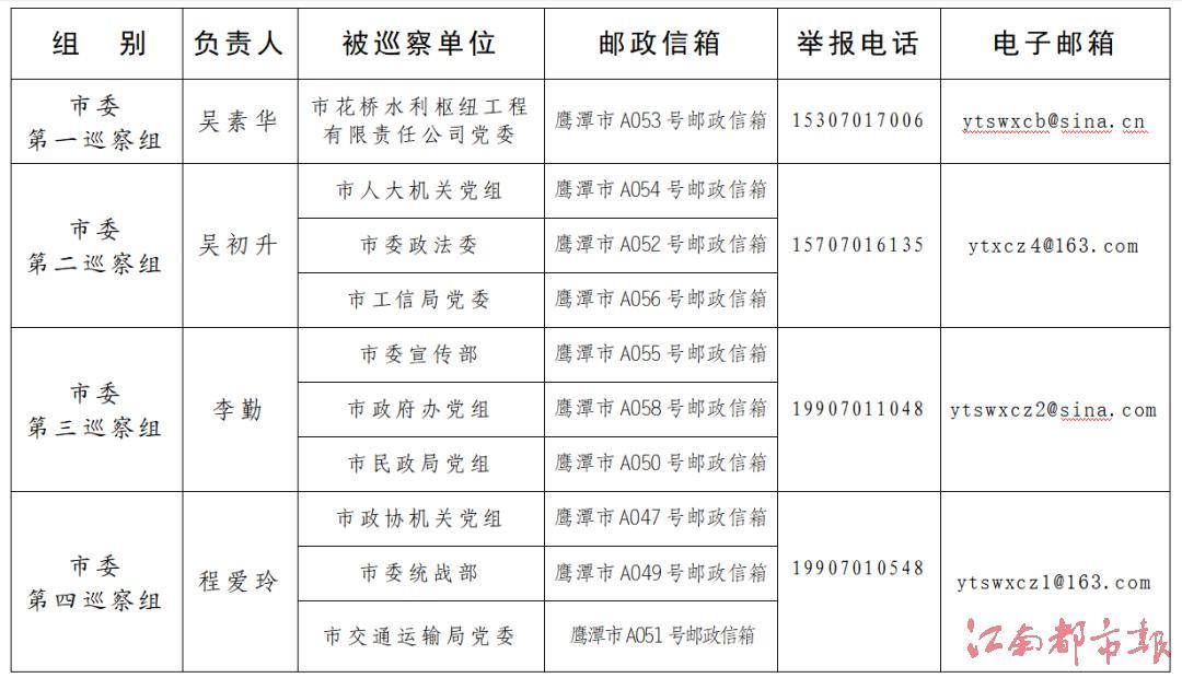 九屆市委第四輪巡察各巡察組聯(lián)系方式