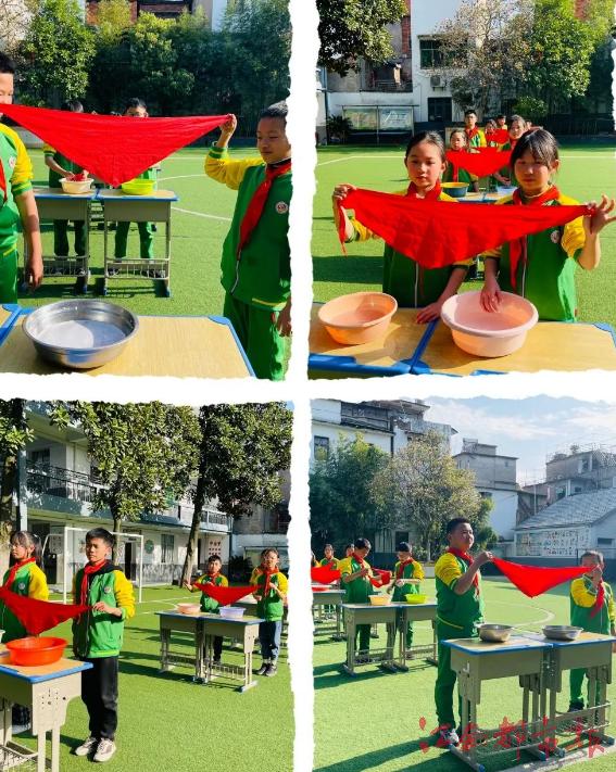高段勞動技能展示通過比比誰的“紅領巾”更干凈活動,引導孩子們團隊合作,一個人洗污漬,一個人漂洗泡沫,就這樣分工合作,感受勞動之美,體會勞動之樂。余萍校長和葉音花副校長,也幫著孩子們逐一在盆中倒入洗衣液,就這樣,一條條鮮艷的“紅領巾”在孩子們的手里搓洗,漂洗到沒有絲毫泡沫,全部都洗的干干凈凈,迎著風飛舞在每一個孩子手中。