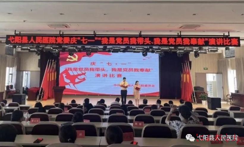 為慶祝中國共產(chǎn)黨成立102周年,切實發(fā)揮黨員先鋒模范作用,6月28日下午,弋陽縣人民醫(yī)院黨委舉辦“我是黨員我?guī)ь^,我是黨員我奉獻”主題演講比賽,該院黨政班子成員擔任演講比賽評委,全院中層干部和全體黨員、預備黨員、發(fā)展對象、入黨積極分子參加活動。