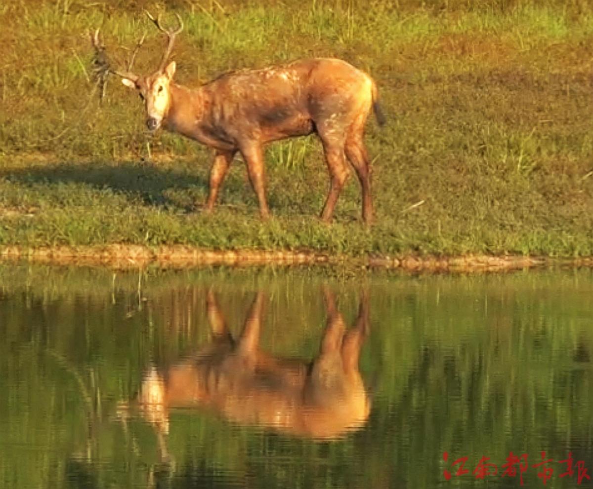 江南都市報訊 全媒體記者許南平攝影報道:從鄱陽湖區(qū)而來,一頭“四不像”在鄱陽縣游城鄉(xiāng)塔下村已待了兩個多月!10月9日,省野生動植物保護協(xié)會、1%工程、鄱陽縣鄱陽湖候鳥保護協(xié)會志愿者一行6人,凌晨4時許第二次驅(qū)車趕到這里,終于拍攝到麋鹿的英姿。