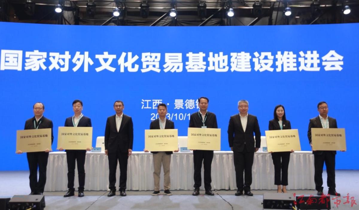 江南都市報訊 全媒體記者余文斌攝影報道:10月19日,國家對外文化貿易基地建設推進會在景德鎮市舉行。推進會上公布了新一批國家對外文化貿易基地名單,并為衡水、哈爾濱、上海、南京、杭州、景德鎮、濟南、廣州、深圳、三亞、自貢、伊犁等 12 家新一批國家對外文化貿易基地授牌。