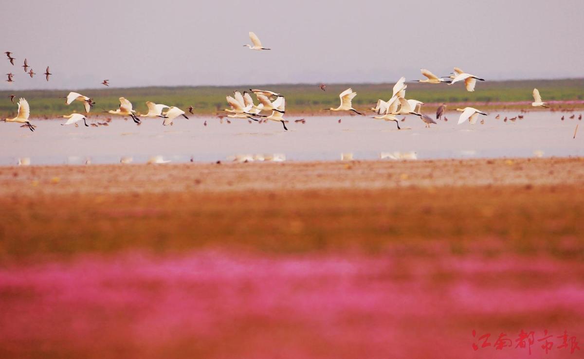 江南都市報(bào)訊 全媒體記者許南平攝影報(bào)道:花逢秋至盛,人愛(ài)水邊紅。10月31日,在都昌縣鄱陽(yáng)湖大沔池水域和余干縣康山大堤附近裸露的濕地草洲上,大量蓼子花在湖灘上競(jìng)相開(kāi)放,形成一大片花的“海洋”,與湖水交相輝映。魚(yú)兒在水中暢游,候鳥(niǎo)在這里嬉戲,宛如一幅美麗的湖光畫(huà)卷,盡顯鄱陽(yáng)湖濕地生態(tài)之美。蓼子花,又名辣柳草、蓼子草、水蓼等。為蓼科,蓼屬,一年生或多年生草本植物。穗狀花序或頭狀花序,中國(guó)大部分地區(qū)均有分布。蓼子花適合生長(zhǎng)于近水邊陰濕處、河灘、水溝邊、山谷濕地,海拔50~3500米處。花期5~9月,果期6~10月。而鄱陽(yáng)湖受秋季枯水期影響,湖區(qū)大面積的湖底和草灘露出,為蓼子花開(kāi)提供了條件。因此,每年的十一月份開(kāi)始進(jìn)入盛花期。