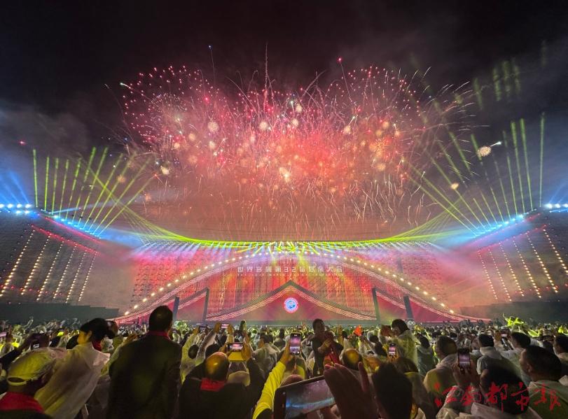 江南都市報訊 李林烜、全媒體記者劉火兵攝影報道:客鄉濃情迎遠客,世客盛會共此時。11月7日晚,世界客屬第32屆懇親大會在江西省龍南市體育中心盛大開幕,展現客家精神、弘揚中華文化,為嘉賓游客呈獻一場精彩的視覺文化盛宴。來自全球各地的客屬鄉親約2500名歡聚于此,共享文化盛宴。