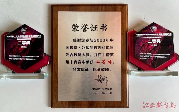 2023年12月22日—24日,“中國技協(xié)•超級顯微外科血管吻合技能大賽”在四川成都成功舉行,江西醫(yī)學(xué)高等專科學(xué)校第一附屬醫(yī)院手足顯微外科蔣文鋒、占太川醫(yī)生在教練、領(lǐng)隊(duì)張億平主任的帶領(lǐng)下,與來自全國186家醫(yī)院257支國內(nèi)顯微外科專業(yè)共750余名同道選手PK,順利晉級決賽,并在決賽中以全國第四名的優(yōu)異成績榮獲個(gè)人精英賽“二等獎”的好成績。