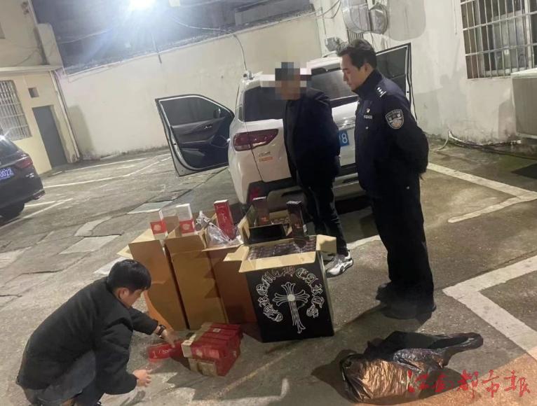 “我們立即和煙草部門聯(lián)合開展偵查摸排,很快就掌握了涉案人員董某山的身份信息及作案情況,在對嫌疑車輛路線進行分析研判后,與樂平市煙草專賣局聯(lián)合在樂平市眾埠鎮(zhèn)某村道上對嫌疑車輛進行設卡攔截。”民警告訴記者,經過長達10余小時的蹲守,辦案人員于2023年12月30日晚9時許,成功攔截并當場抓獲涉案人員董某山,現(xiàn)場查獲假冒偽劣香煙261條。