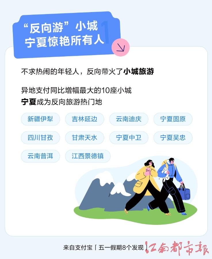 “五一”旅游“熱辣滾燙”,卻悄然有了新變化:眾多年輕人選擇避開大景區“人從眾”,前往小眾景點,開啟“反向旅游”。據支付寶數據,新疆伊犁、吉林延邊、云南迪慶、寧夏固原、四川甘孜、甘肅天水、江西景德鎮、寧夏中衛、寧夏吳忠、云南普洱等十座小城市異地支付同比增幅最大,其中寧夏獨占三城。科技也改變出游人的辦事方式。“五一”期間,上百萬人次使用基于AI研發的支付寶智能助理,作為生活旅游的“辦事搭子”。其中,問最近的天氣、查附近的美食、找App里的優惠券是人們向AI提問最多的三個問題。