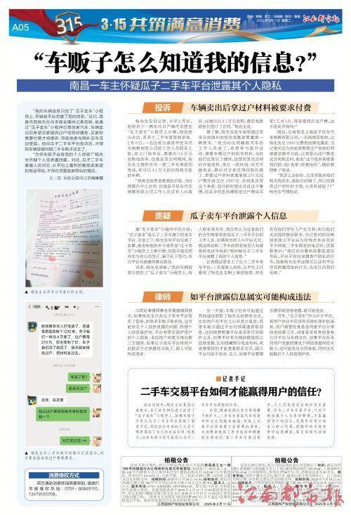 “我的車輛信息只掛了‘瓜子賣車’小程序上,懷疑是平臺泄露了我的信息。”近日,南昌市民楊先生向本報全媒體記者反映,他通過“瓜子賣車”小程序出售自家汽車,車輛賣出后希望買家提供過戶信息卻遭拒,買家稱需要付費才肯提供,導(dǎo)致他參與國補(bǔ)買車活動受阻。他向瓜子二手車平臺投訴后,才得知車輛是被同城二手車販子買走了。