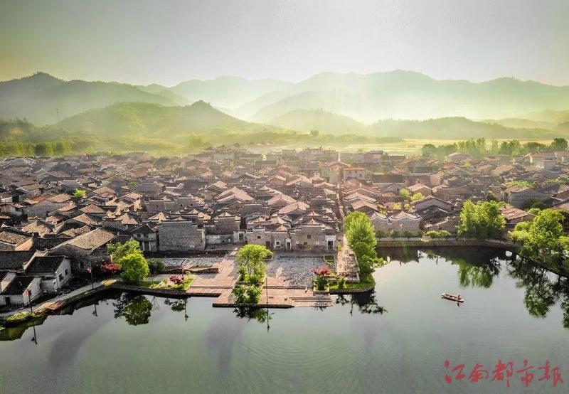 青山環(huán)抱、江水環(huán)繞的流坑古村。(歐陽順 攝)