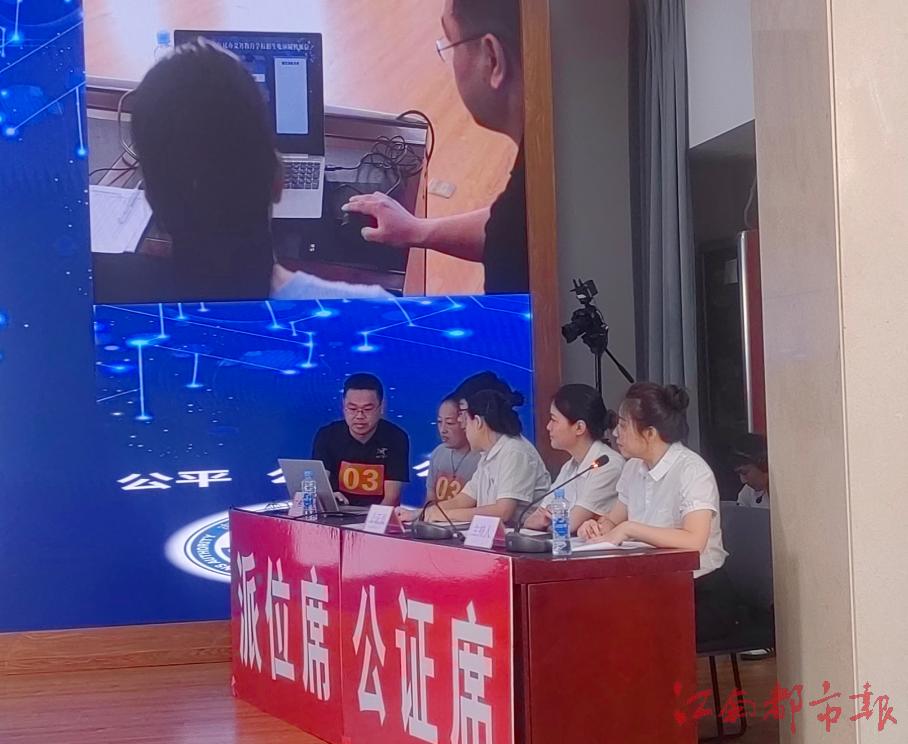 據南昌市教育考試院相關人士介紹,確定了7月16日上午進行電腦派位之后,7月15日上午,在南昌市紀委監委駐市教育局紀檢監察組、南昌市豫章公證處的全程監督下,由南昌市教育考試院紀檢人員抽簽確定了7月16日參加電腦隨機派位學校的派位順序,對報名以上民辦義務教育學校且通過報名資格審查的學生現場隨機生成了派位碼,并按要求對數據進行了密封;7月15日下午,隨機抽取了家長代表,現場參與電腦派位。