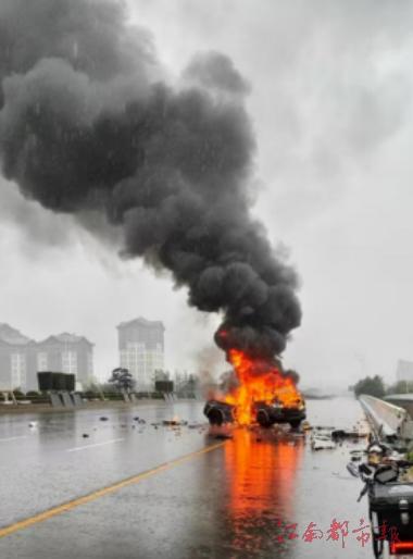 此時,暴雨如注,雷斯航的力氣幾乎耗盡。一名路過的司機大叔沖上來幫忙,緊接著更多市民加入救援。他們合力將受傷人員轉移到約100米外的安全綠化帶旁。就在脫離險境的瞬間,身后傳來震耳的爆裂聲——整輛車被沖天烈焰徹底吞沒。確認被救司機仍有呼吸后,雷斯航請大叔幫忙報警,自己則一直守在傷者身旁,直到交警和救護人員抵達現場。隨后,他默默騎上電動車,趕著去配送即將超時的外賣訂單。
