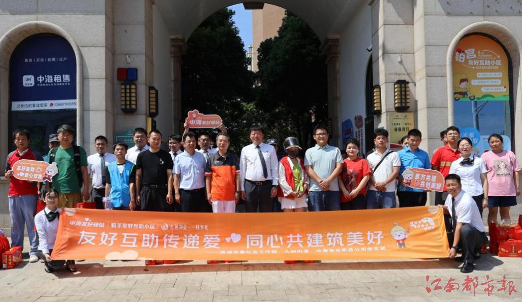 為進一步構建騎手友好互助社區(qū),切實關懷新就業(yè)群體,2025年7月30日,九洲街道在西湖區(qū)委社會工作部的領導下,聯(lián)合中海物業(yè)南昌公司黨支部,在中海朝陽郡?鉑宮小區(qū)隆重舉行了騎手友好共建服務活動啟動儀式。西湖區(qū)委社會工作部九洲街道及中海物業(yè)南昌公司黨支部領導、轄區(qū)騎手及戶外勞動者代表共計百余人齊聚現場。區(qū)委社會工作部精心準備了防暑降溫禮包,為到場的新就業(yè)群體代表發(fā)放了包含涼茶、綠豆、銀耳等夏日物資,傳遞了夏日別樣“清涼”。同時,街道與物業(yè)共同提供的夏日清涼愛心飲品柜也正式投入使用,當天累計發(fā)放物資500余件,以“看得見、摸得著”的暖心舉措傳遞城市溫度,讓高溫下的勞動者真切感受到社會各界的貼心關愛。