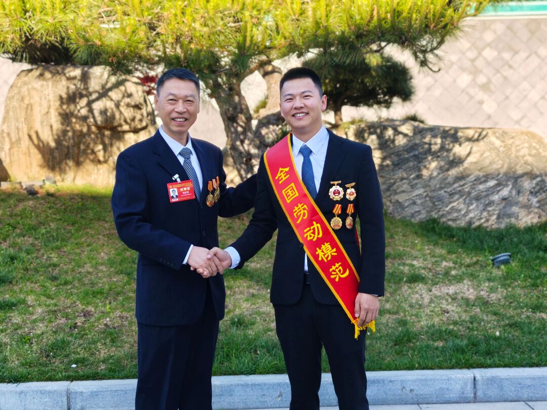 ▲楊準(zhǔn)正(右)與同為全國勞模的師傅袁政海(左)合影(受訪者供圖)