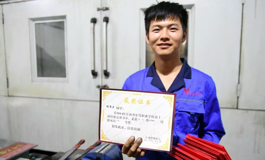 2014年,剛剛18歲的楊準(zhǔn)正從技校畢業(yè),憑借江西省鉗工技能競賽第一名的優(yōu)秀履歷,成功入職江鈴汽車股份有限公司智能裝備中心(原模具廠),從事工裝夾具設(shè)備的安裝調(diào)試工作。學(xué)生時期打下的技藝基礎(chǔ),讓楊準(zhǔn)正在工作中嘗到“甜頭”。入職3個多月,他在企業(yè)技能競賽鉗工組拿下第一名,也因此提前轉(zhuǎn)正,被列為企業(yè)的重點培養(yǎng)對象。這也解開了曾經(jīng)困惑他的問題——鉗工原來在實際生產(chǎn)中依然備受重視。
